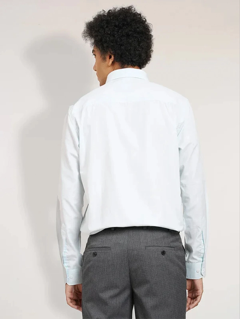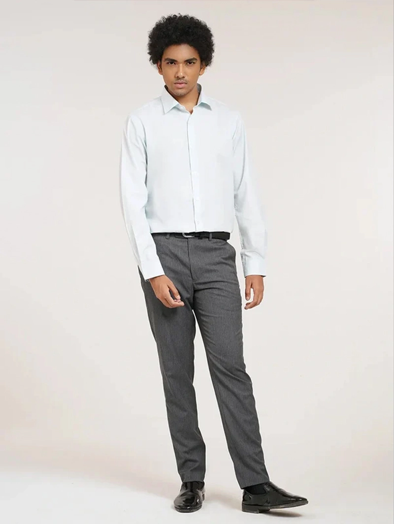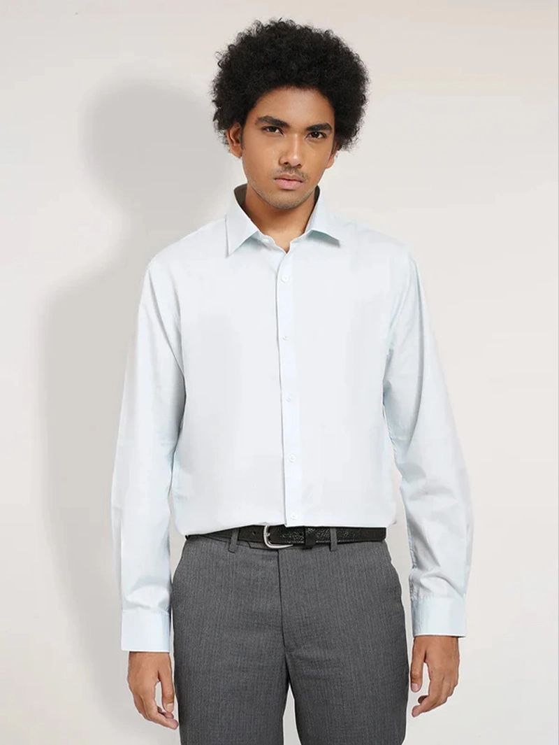 Designed for sharp, professional styling, the men’s shirt features a fine textured pattern for a refined look. Made from premium lightweight fabric, it offers a crisp appearance with excellent breathability. The slim-fit silhouette enhances the body shape while allowing ease of movement. It includes a classic spread collar, full button placket, and barrel cuffs perfect for office wear, formal meetings, or evening events.