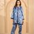 A statement ensemble that blends effortless style with intricate detailing. This printed co-ord set features a delicately embellished collar and placket, adorned with stone accents for a touch of understated glamour.
